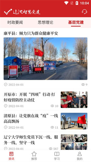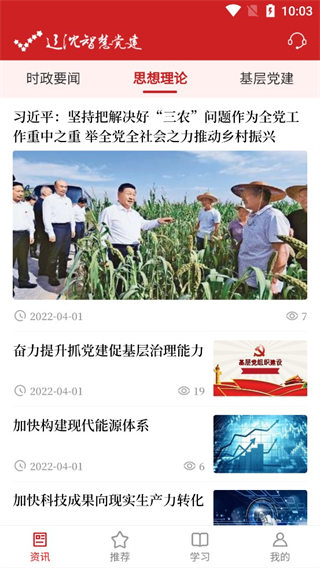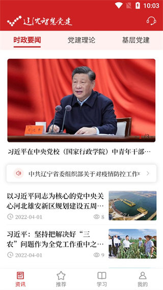 2、在资讯这里我们可以看到时政要闻、党建理论、基层党建;