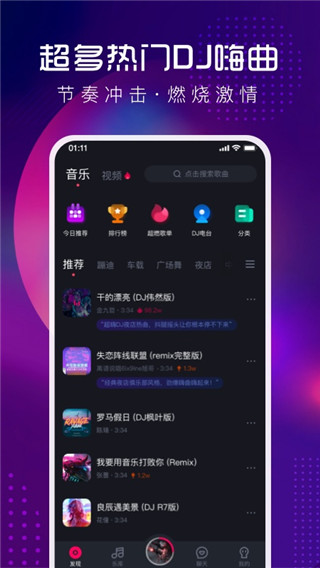 【数十万正版DJ嗨曲,任意畅听】 超多热门DJ嗨曲,你想找的都能找到! 中文DJ舞曲、英文DJ舞曲、3D环绕舞曲、日韩舞曲、车载、夜店、苏荷、喊麦、电音、Remix、网络DJ等,酷狗DJ全都有! 【超火DJ歌单电台】 7大分类,34个细分类,为您挑选DJ音乐! 场合:夜店舞厅、广场舞、车载、苏荷慢摇吧 热门:抖音热歌、流行金曲、发烧经典、劲爆嗨曲、情歌对唱…… 【专属DJ车载模式】 开车听DJ,永远不犯困!心情与音乐永远在路上! 【精准个性化推荐】 根据您的听歌喜好和口味,每天为您推荐不同的DJ舞曲,相信每一首都能击中你!酷狗DJ版怎么用