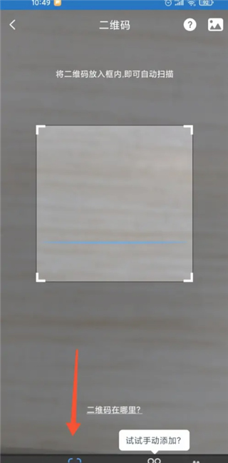 2、点击添加,如下图,点击扫码添加,看到手动添加