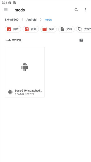 8、找到之前设置好的文件夹,点击安装修补的apk文件即可。
