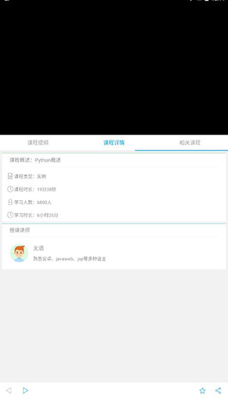 5、视频观看,可以查看课程提纲,课程详情,还有相关课程。