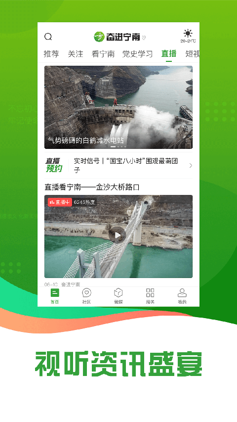 1、乐享生活 便民搜索、实时缴费、高考查询,生活服务功能不断丰富; 2、海量资讯 国内国际一手掌握,身边精彩即时推发,全天候、全方位、全时段服务,新闻阅读快人一步。 3、智能推送 融合大数据、可视化、人工智能等先进技术,主流信息与用户兴趣智能匹配、精准传播。奋进宁南app使用说明