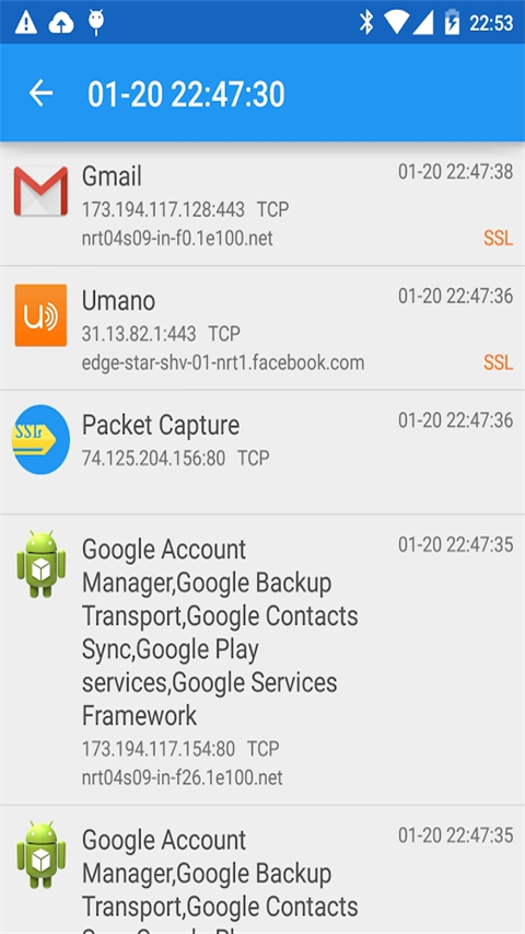 4、回到Packet Capture,我们可以看到抓取到的数据