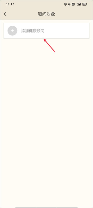 2、会发现只有一个选项,点击【添加健康顾问】。