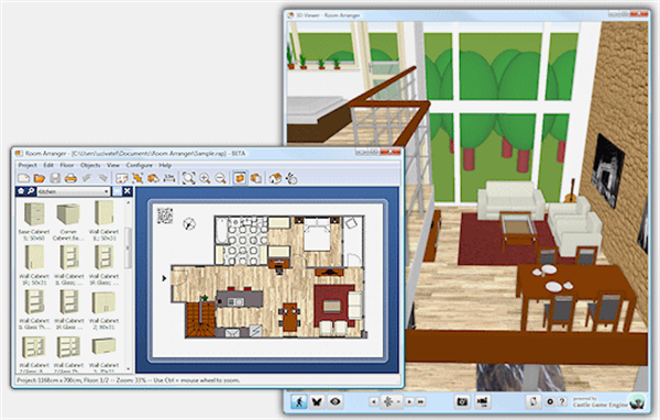 Room Arranger是一款室内设计布局工具,也是目前网络上最优秀的房屋布局设计软件,用户只需在图纸上轻轻移动相应的家居,即可实现整个房屋的全新设计,可以实现3D模拟效果图,让你直观的看到自己设计的整个房屋布局。Room Arranger实用非常简单,本身软件自带了很多素材库,只要把相关的物件进行拖放来设计。为您提供了这样一个虚拟设计你房间的机会,让你轻易移动移动笨重的家具而不用后悔是否因放错位置而重搬。如果不预先设计好的话,盲目地去搬东西摆放,有可能会将你的房间搞得一团糟。软件省去了在纸上画草图的麻烦,最大程度地节省你宝贵的时间。软件中允许你使用工具来测量你的物品的长度,不仅如此,Room Arranger拥有物品库,中间包括了很多你画草图需要的东西,例如沙发,柜子,桌子等。你可以使用3D模式来对你设计的房间进行查看,保证效果如你所愿。