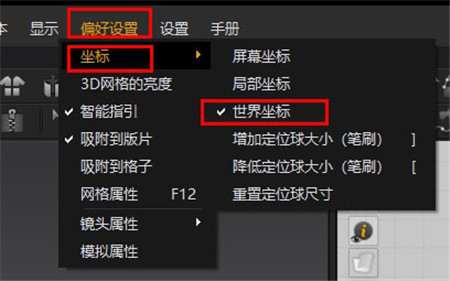 4、接着,我们修改下默认坐标轴为世界坐标,如图所示: