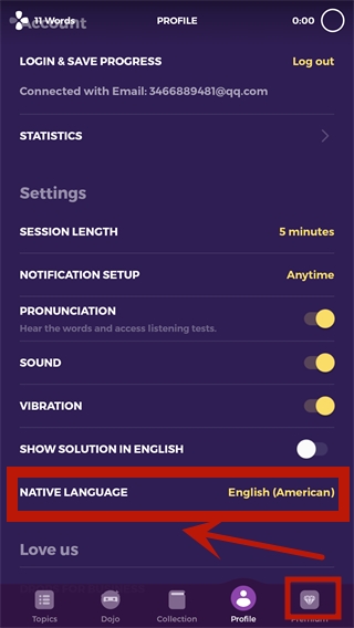 1、选择Profile栏并向上滑动屏幕,选择NATIVE LANGUAGE。