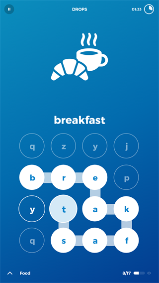 1、每天只有五分钟 把你的学习时间限制在了每天5分钟。这听起来也许有点疯狂,但其实是非常有魔力的。没有门槛限制,但也没有借口:你只有5分钟! 2、纯粹的视觉化学习 更快、更好、更有趣!每一个单词都已被结构成了精美的图片。伴随着双眼从精美图片中获得的享受,你的大脑将更有效地记忆新的单词:你将不会再进行“外语-母语”式的记忆,而是将“外语”直接印刻在脑海中。 3、不费力的学习 我们仔细地研究了游戏为什么如此有趣并令人沉迷,并将其中的精髓融入到了Drops中。因此我们不仅创造出一款游戏化的学习应用,更创造出一种正确的游戏体验。它给你留下深刻印象的方式也许有点古怪,但正因为如此,你不是再将学习浪费在了玩乐中,而是利用这些时间为新语言积累了可观的知识财富。Drops怎么用