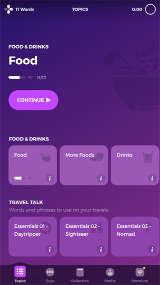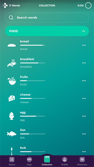 6、Dojo是利用最优的学习方法练习单词的训练营,学习一定数量的单词后即可解锁。