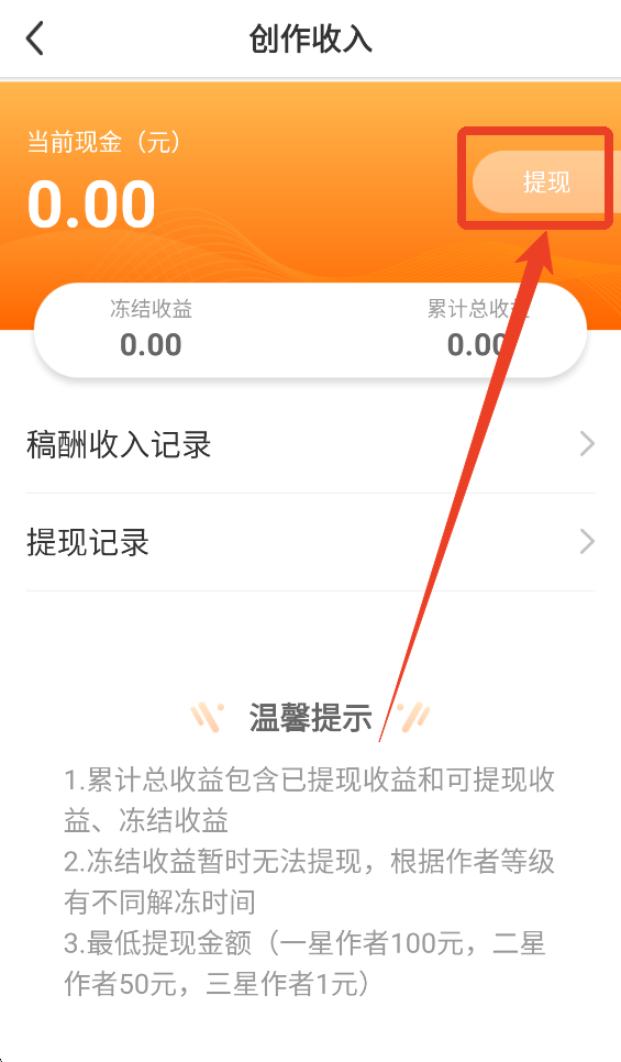 4、绑定完成之后会回到创作收入页面,再次点击提现选项,输入你想提现的金额点击下方的提现。
