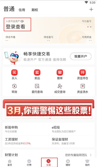 1、在本站下载招商证券智远一户通手机版进入软件,进入交易界面,点击登录查看;