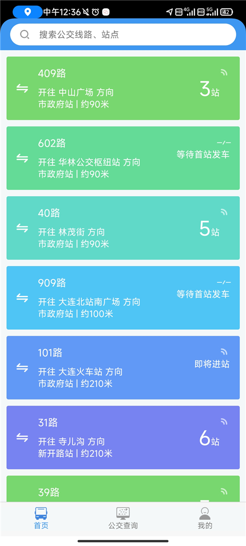 1、自动获取用户的周边线路,提供最近公交站点步行导航 2、查询公交车在途中的实时位置,让用户可以合理规划行程 3、查询换乘信息,提供公交线路的运营时间及运营轨迹,给用户最合理的出行方案大连公交车app怎么用