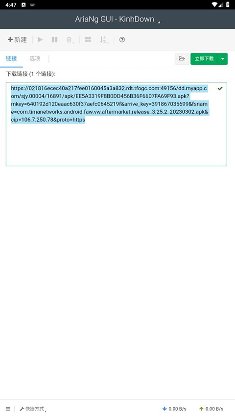 1、集成aria2c 2、多线程下载 3、未完成任务退出自动保存 4、支持PT/BT 5、下载完成消息通知 6、多语言支持 7、支持配置多个 aria2 RPC 8、支持打开下载文件夹, 在文件管理器中显示已下载的文件 (仅限使用内置的Aria2 RPC) 9、使用响应式布局, 支持各种计算机或移动设备 10、友好的界面交互AriaNgGUI手机版教程