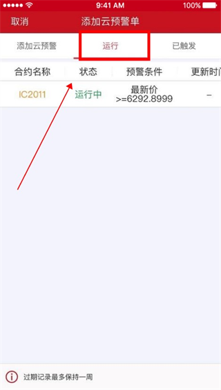 3、在运行界面可看到已添加的云预警合约。