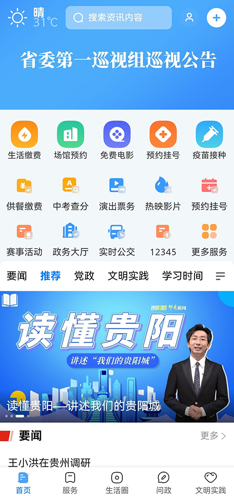 1、资讯实时推送 人工智能推荐你感兴趣的新闻资讯、每日热点头条新闻第一时间送达; 2、独家本地资讯 各种贵阳新闻资讯内容,一键就能查看,让你随时随地看贵阳。 3、精彩视频内容 影视、搞笑、娱乐、生活等丰富多样的视频内容,通过视频了解贵阳。更新日志