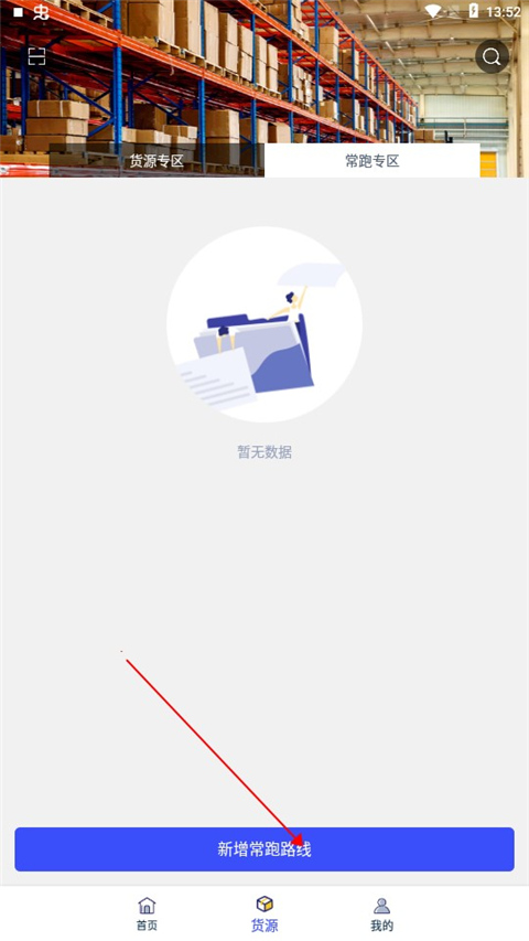 8、点击添加新增常跑路线,添加后用户就可以在这看到相关路线的货源信息了。