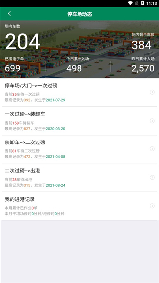 5、点击进入停车场动态,用户可以在这里查看停车场的动态信息。