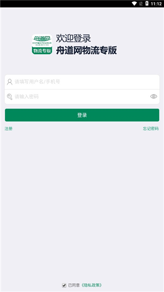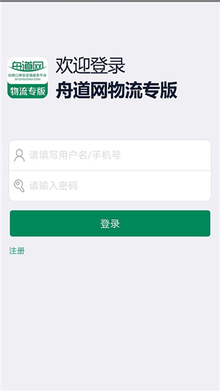 1、在本站下载安装并打开舟道网物流专版app,进入软件进行注册登陆。