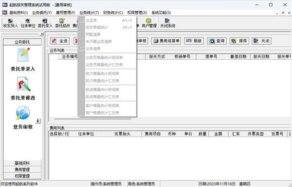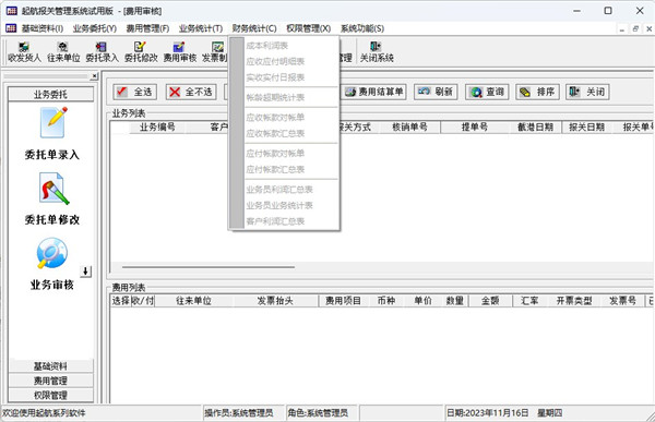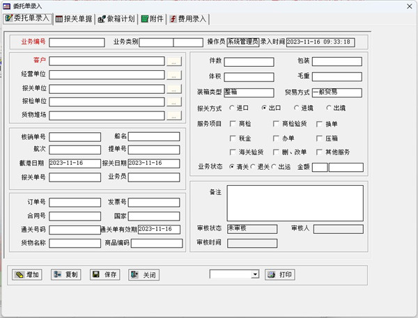 起航报关管理软件是由葫芦岛起航软件科技有限公司开发的一款简易型的报关业务操作软件。起航报关管理软件体积小巧,界面美观,适合中小型报关企业,帮助您记录报关单业务数据,免去您重复输入业务数据之苦,详细记录应收、应付费用,为您提供应收、应付帐单的自动生成,提高工作效率;自动生成各种财务统计报表,大大节省财务做帐的时间