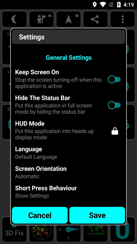 1、GPS Test支持自动探测Android设备上的Gps,还可以显示多种Gps数据,并支持选择多种不同的Gps坐标格式。 2、显示当前接收到的Gps卫星数量,信号强度,方位,显示你的Gps坐标,指南针功能。 3、你所在地区是白天还是黑夜,你现在的速度,你现在所在时区的时间,以及Utc时间等等。更新日志