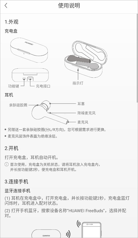 而且,完全不用担心操作问题,FreeBuds助手为大家准备了详细的使用教程,从耳机的外观再到充电等等,都有详细的图文教程,第一次使用的朋友也可以快速上手,这一点还是比较的贴心。软件还可以准确获取说话时机主的骨声纹信息,再加上手机语音助手功能,带上耳机语音助手便在耳边时刻待命,给大家带来更好的使用体验。