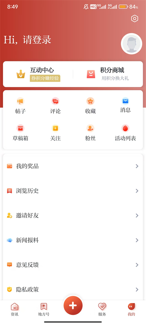 2、点击上方右侧头像,进行账号登陆。
