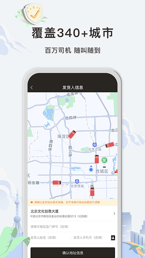 1、运费月结 30天无息运费账期,企业现金流更灵活。 2、现场管控 运作经理驻场,专业现场管理。 3、高额保障 中国人寿战略合作,全程保障您的货物。 4、120万运力 司机经过严格筛选,服务质量标准透明。 5、配送管理系统 招车、排线、在途监控,PC/App在线全搞定。软件亮点