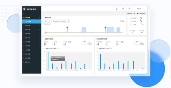 企业运维页面,还可以查看所有设备/通道的实时状态,能够从日、周等维度快速进行数据概览
