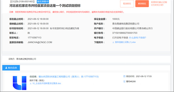 6、报名成功后,需要采购商进行审核,在采购商审核之前依然可以修改报名,也可以取消报名;