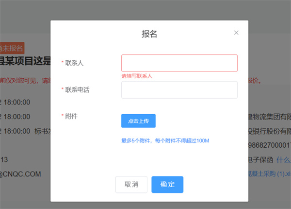 5、报名时,用户需要填写联系人信息,如果有资料可以上传,没有可以不用传;