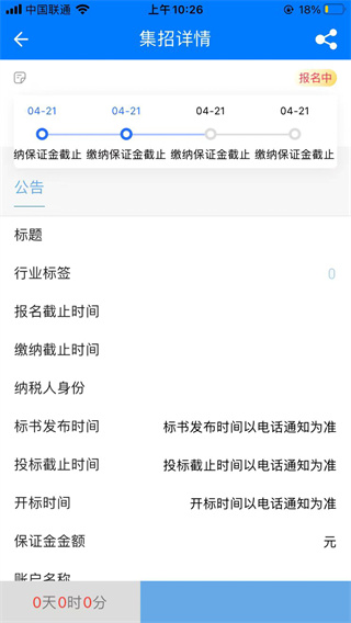 4、点开公告可看详情,在公告中展示各个节点的时间,且展示当前的进度状态,班组可点击【我要报名】进行报名;