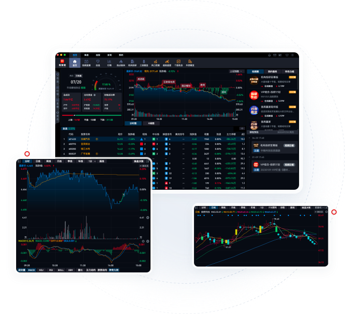 通过云端服务器强大的数据传输能力,实现自选股的实时同步,支持多达数十个自定义分组及板块同列,实现同一个账户、多个终端随时切换查看自选股。