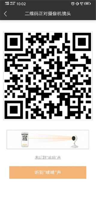 6、让镜头正对二维码,听到滴滴提示音后点击“听到滴滴声”。