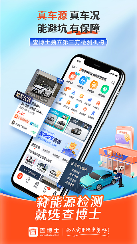 【首页】 1、维保查询;便捷查询通道,根据所输入的VIN码快速查询报告 可根据用户输入的VIN码,点击查询,进行二手车车况历史报告查询 选择拍照或手机相册中的图片,上传图片进行图片识别VN码进行查询 为用户讲解什么是VIN码以及VIN码所在车辆位置 展示产品优势:查询品牌覆盖全面,高效查询,最快一秒,专家服务、专业解读,超时退款、报告免费,报告有变、免费更新等 2、检测;将覆盖全国90多个城市,进行专业检测VIP一对一服务。专业检测师,平均从业三年以上,配合app打造智能检测工具,进行多达350项专业检测,出具车辆车况保障协议,随时提供专业支持,并享90天三大问题(重大事故、水泡、火烧)包退服务,尊享理赔无忧! 3、延保;1年3万公里售后保障!14大系统保障(发动机机械系统、发动机控制系统、发动机进排气系统、差速器……),不同车辆车况、不同延保套餐随意搭配,开放心车。 4、估价买卖二手车、车况透明、价格合理。值多少钱,查博士帮您免费估价,基于大量真实矫正数据,结合历史车况大数据分析估值,估值准确,数据更丰富; 【查询】 图片、文字双剑齐发,为用户提供快捷的查询服务 输入VIN码点击查询,进入订单核实页,页面体现元素:车辆基本信息、服务保障,查询报告时间超出20分钟退款等服务 【报告】 报告列表一目了然,支持搜索、删除、备注等管理功能 搜索:可根据VIN码后6位、品牌、备注等关键字查询报告 点击报告,进入报告详情页,可查看二手车车况历史数据,包括事故分析、车况分析、历程分析、车主爱惜度分析等 解析报告:对车辆事故分析、车况分析、里程分析、车主爱惜度分析进行全面的专家解读,让用户更加直观、详细的了解车辆情况 报告分项:通过查博士查询的车辆维修保养记录报告可分项到朋友圈、微信好友更新日志