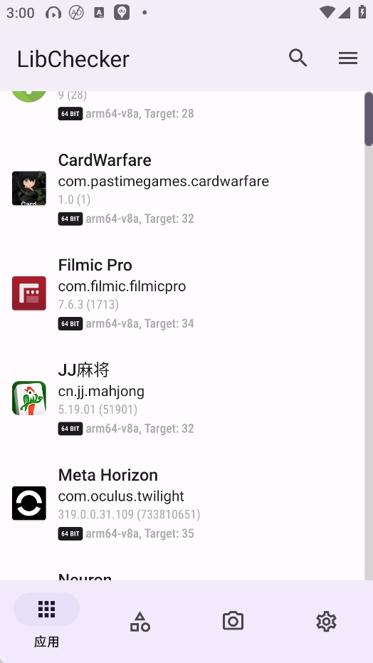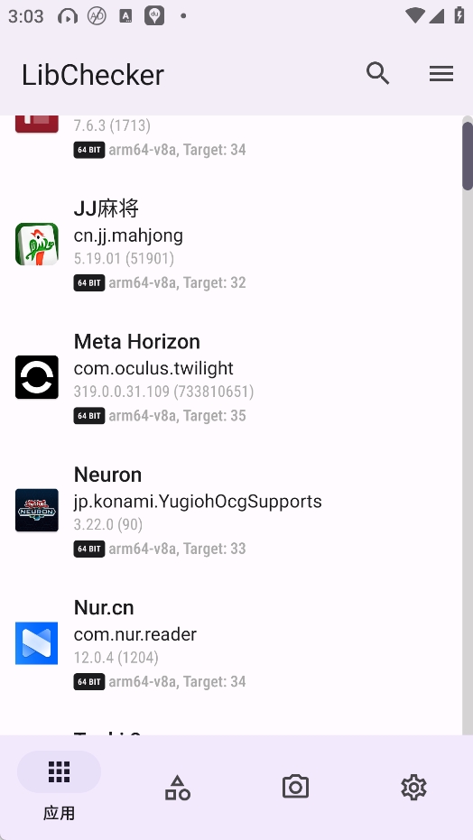 1、在本站下载并安装LibChecker,进入软件首页可以查看手机上已安装的应用。
