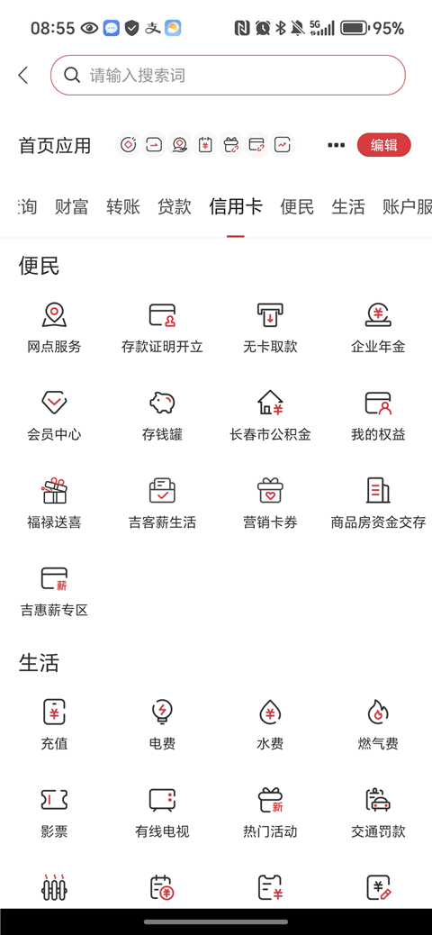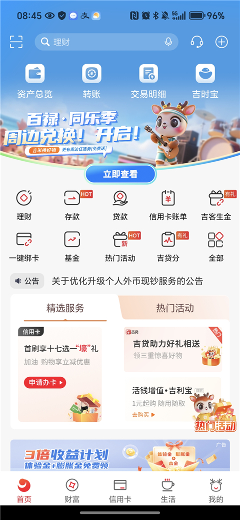 1、账户管理:包含账户查询、行内、跨行转账等基本功能。 2、理财服务:包含活期、定期储蓄、增利账户、理财、基金等服务。 3、信用卡功能:包含账单管理、分期还款等功能。 4、缴费通:生活缴费、一键缴费。吉林银行怎么查余额