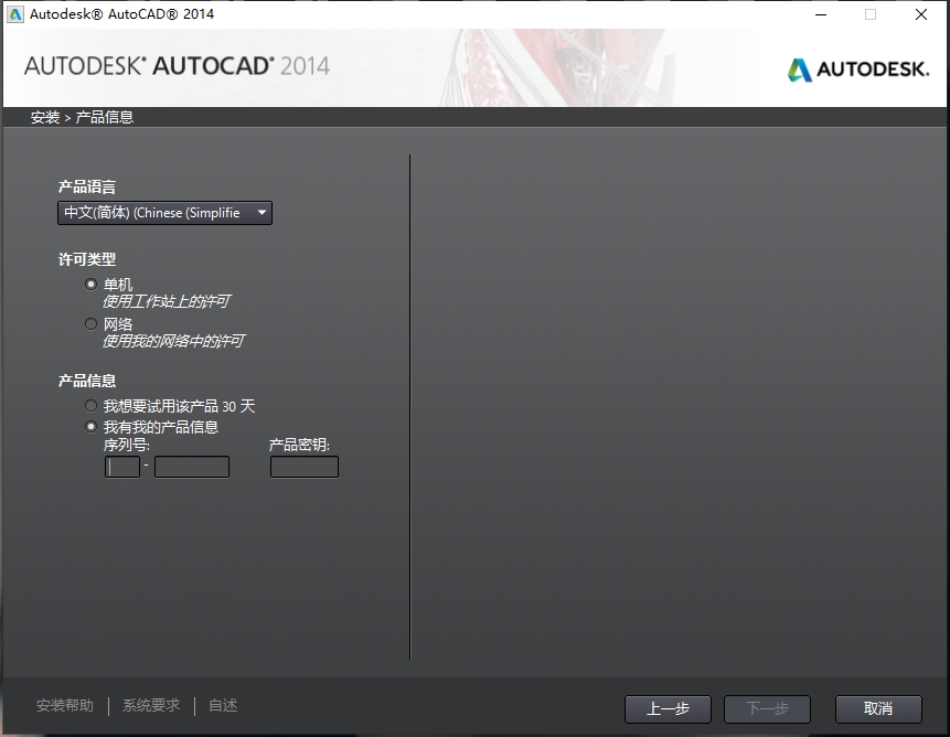 8、依次输入序列号和产品密钥,点击【下一步】。
