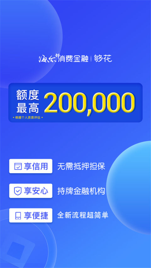 1、够靠谱:海尔消费金融官方出品,正规持牌消费金融机构! 2、够你花:最高20万贷款额度,循环额度随借随用! 3、够便捷:全程APP申请,免抵押,使用身份证+银行卡等材料即可申请!【温馨提示】