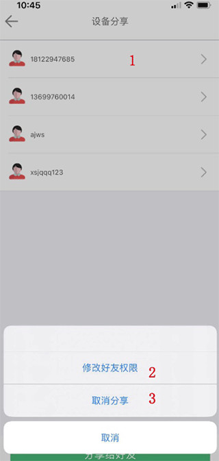 3、设置分享用户权限,点击确认,对方同意分享即可。