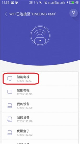 2、保持手机和智能电视在同一个路由器,打开悟空遥控器,搜索连接你的电视。
