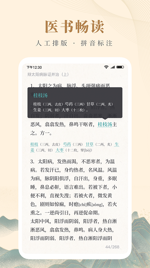 1、中药方剂大全 中药材天地网:10000余味中药、16000余种方剂数据;结构化的药材方剂详情设计,包含药典内草药介绍信息; 2、注解医书 包含《伤寒论》《金匮要略》等中医古籍医家白话注解;对比名家注解,提升学习效率,增强学习效果; 3、名家讲堂 大家中医的教学视频,助力中医学爱好者成为中医通、中医智库;努力达到灵兰中医、扁鹊中医水准; 4、执业题库 包含中医执业医师、中医执业助理医师、中药师、执业中药师、中医考研、中医师承专长、初级中药师题库;具备错题巩固、章节练习、历年真题、我的想法、数据报告功能; 5、各类工具 五运六气、中药识别、子午灵龟、子午流注、医药学大辞典、健康养生知识等。更新日志