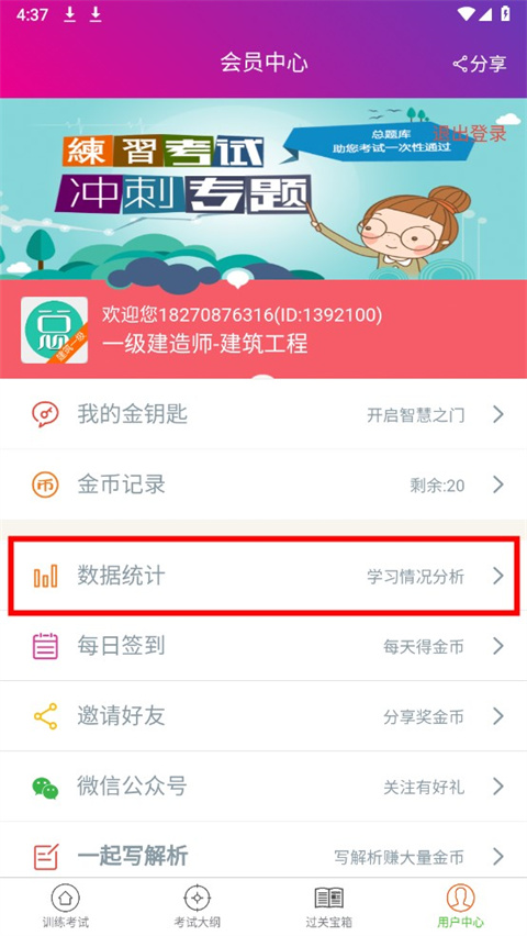 一级建造师建筑工程app怎么查看学习情况