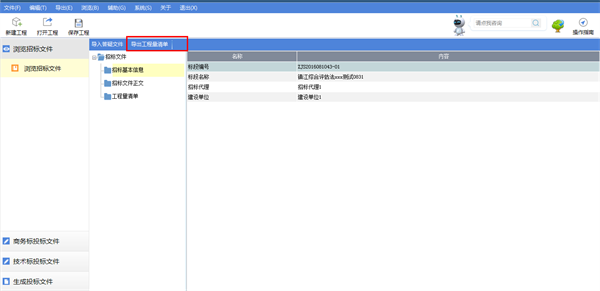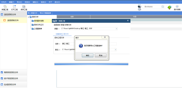第四步、新建之后会进入到投标工程文件编制界面,同时会提示【是否需要导出工程量清单】;
