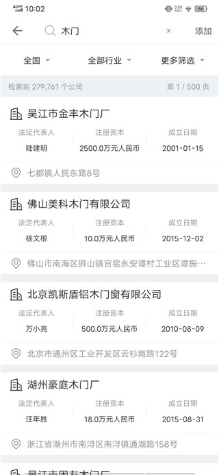 4、也可以只选择某一行业来查看对应的企业信息。