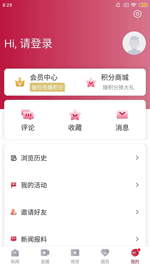 5、如果想要正常使用软件的全部功能,就需要到【我的】页面进行注册登录。