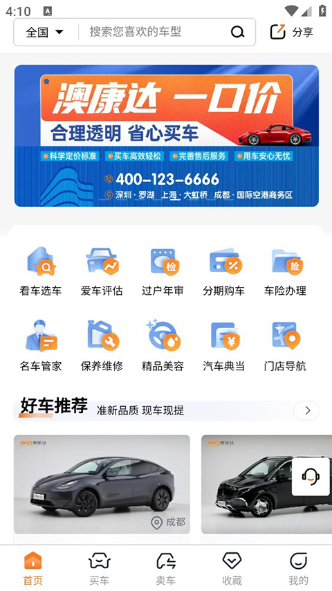 1、360项检测认证 每一台认证车,都要进行八大类360项检测和匠心整备,达到“准新车”标准,并通过进一步质检合格,才会进入展厅销售。维修保养记录、保险记录、整备记录等,通过《车辆检测报告》透明呈现,真正做到让消费者买得清楚,买得心安。 2、一口价销售模式 澳康达一口价实行十余年,无论展厅、官网、APP均标明车辆售价,澳康达通过根据车况、市场行情等综合因素科学定价,以更合理的价格明码实价,省去了议价烦恼。 3、公平卖收购模式 澳康达公平卖收购模式,毛利如超过5%,则超出部分的50%返还原车主。通过透明公平的收购准则、标准化的收购体系,实现买卖双方信息对等,让交易过程看得见、让利润透明化。 4、售后增值服务保障 专业售后团队规模500人,分品牌提供专业服务;同时还构建了售后增值服务体系,包括7天无理由退车、1年不限公里质保和免费保养、终身免费车辆年检、24小时道路救援等,让消费者用车无忧。软件功能