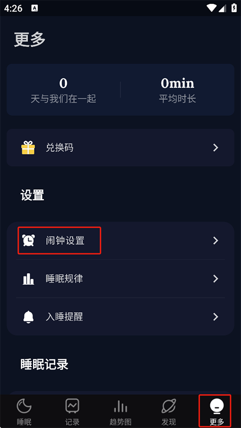 2、打开睡眠监控应用程序 > 更多 > 闹钟设置