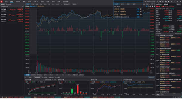 叠加品种:进入分时图,右键选择“叠加品种”,在弹窗中选择常用指标或者自选股,也可以手动输入代码或者简拼,叠加其他任意品种;