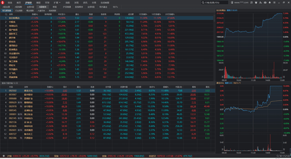 2、登录账号后即可进入软件,默认页为沪深京页面,在该页面可以切换A股全景、A股指数、全部A股等内容;
