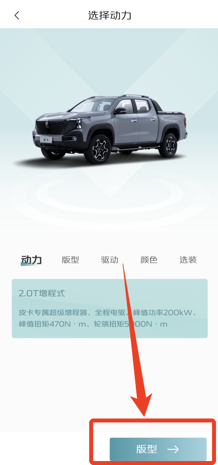 4、动力只有一个选择的话可以直接点击第二个开始选择版型。